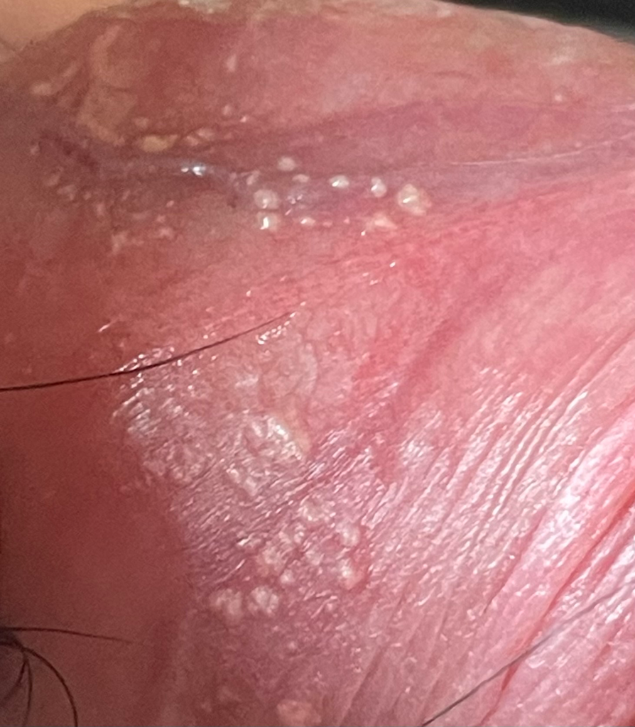 경험이 없으면 성매개 감염질환은 아니지요. 진주양 음경 구진증 같습니다. 비뇨기과에 가서 확인은 해 보시기 바랍니다.