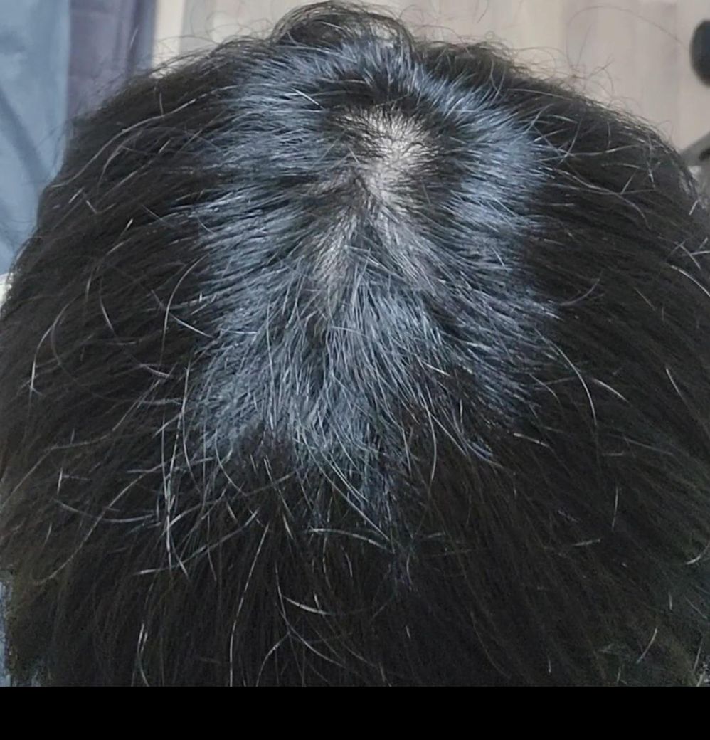 탈모 여부를 판단하기 어렵습니다. 정수리 부위는 모낭의 분포가 낮은 편이기 때문에