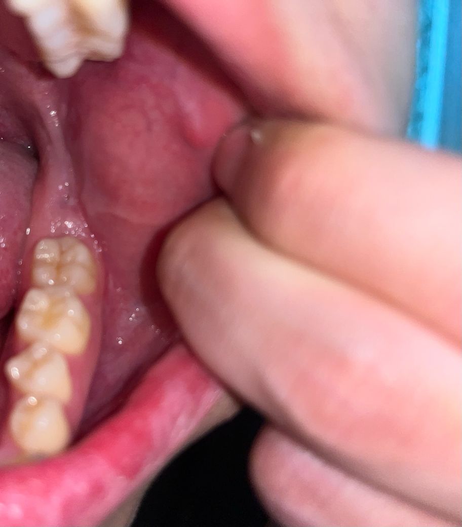 사랑니가 아래 잇몸과 교합되는 상황이라면 잇몸에 상처가 날 수 있습니다. 이게 바로 악성병소로 이어지진 않겠으나 지속적인 자극은 궤양을 만들 수 있습니다