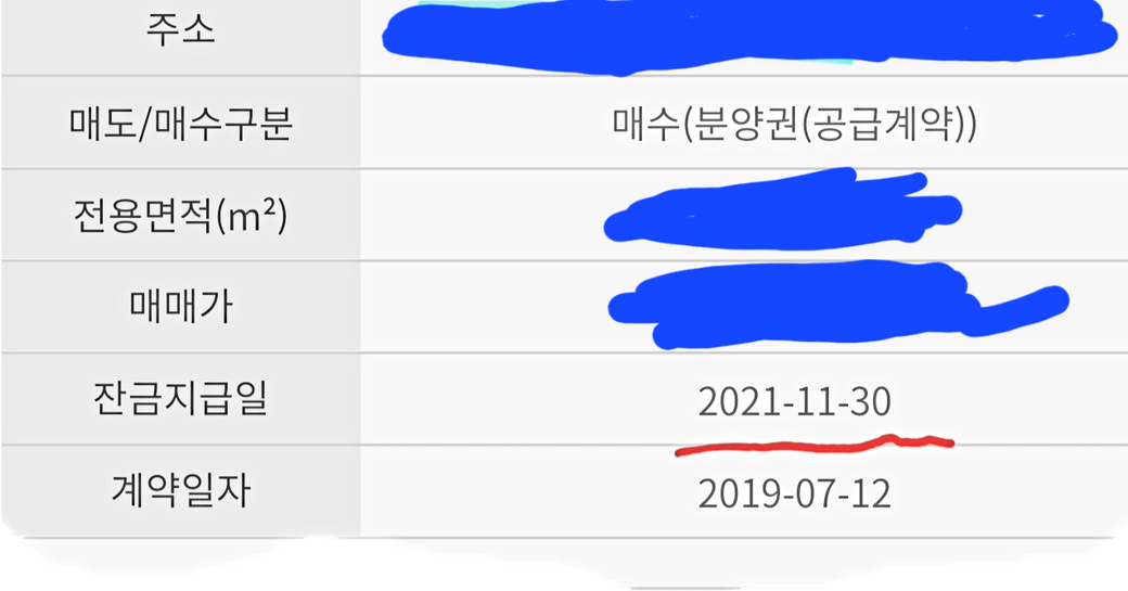 청약홈에서 조회했을때는 2021.11.30일에 잔금지급일이라고 나오는데 실제 잔금지급일은 2021.10.29일입니다