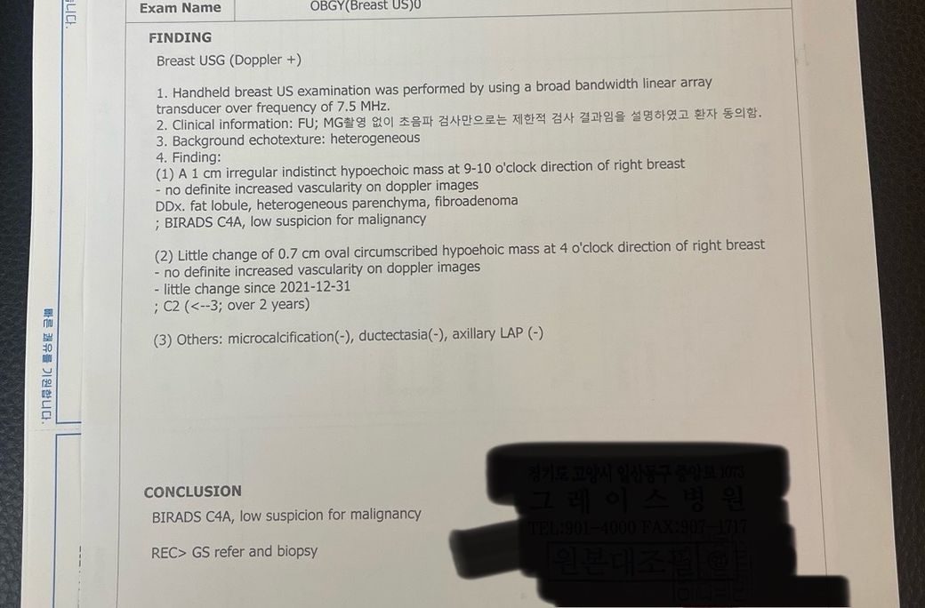 조직검사 결과 양성, 그러니까 암이 아니라면 큰 병원에 가실 필요도 없습니다