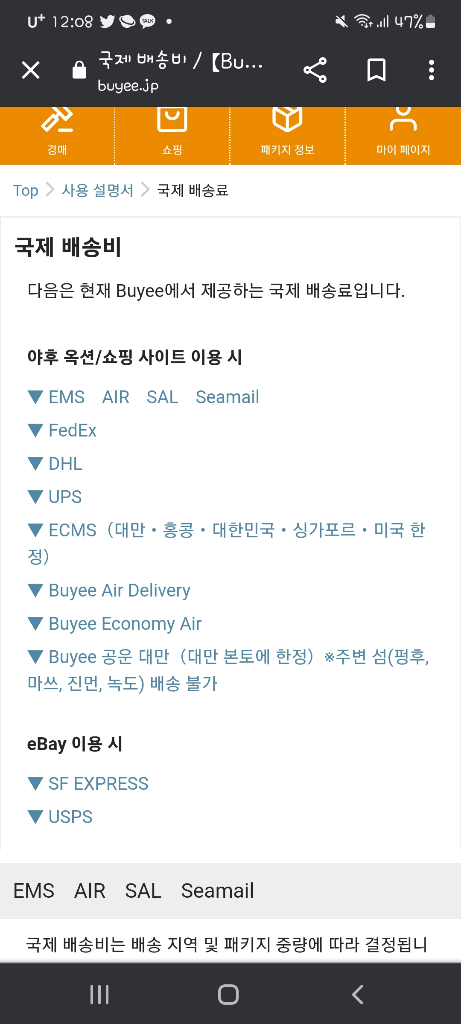 EMS는 국제우편입니다.