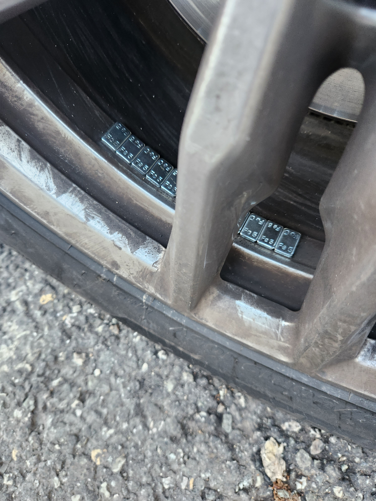 절대 떼시면 안되구요 휠 밸런스잡아주기위한 납입니다 타이어가 둥글잖아요 중심을잡기위해 조정한거예요