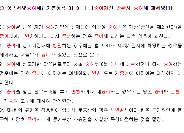 세법 상 금전 증여는 반환의 개념이 없기 때문에 당초 증여도 증여이고 반환도 또 다른 증여로 보는 것이 원칙입니다.