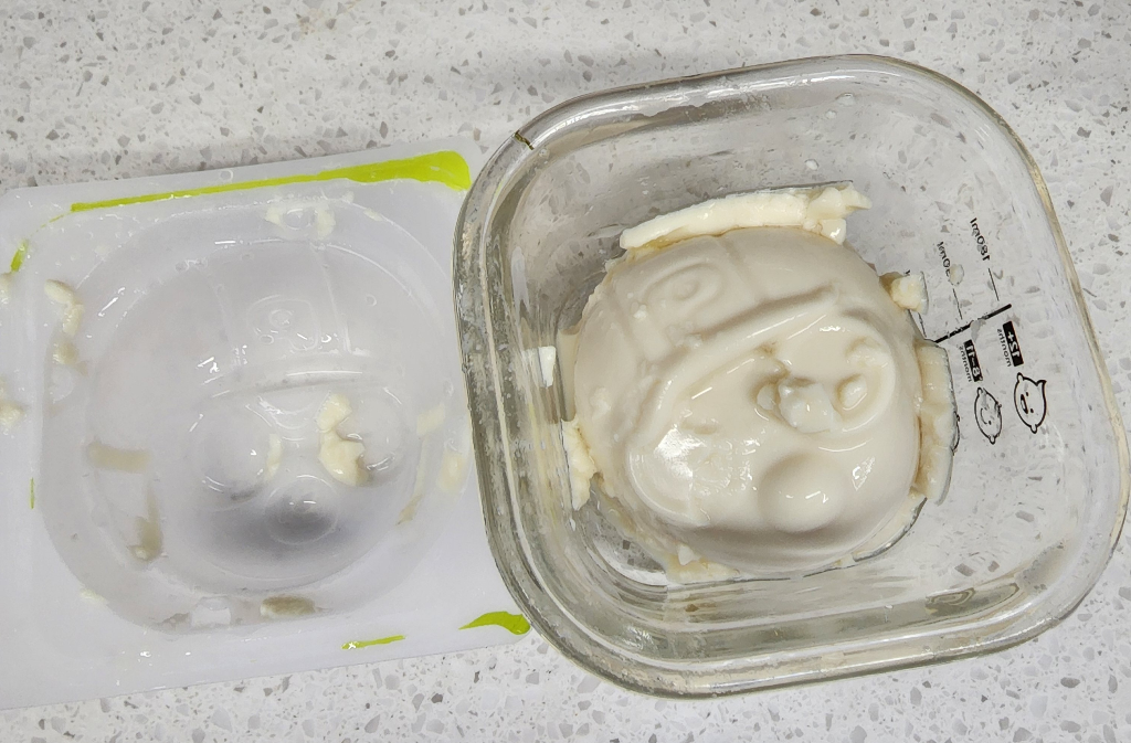 캐릭터 모양의 연두부를 종종 먹는데요. 아이한테 저 모양이 잘 살아있는 걸 주고 싶은데, 쉽지가 않더라고요. 첨부한 사진의 연두부는 그나마 양호하게 빠진 거고, 보통은 형태를 알아볼 수 없을 정도로 깨집니다. 모양을 잘 살려 빼는 방법이 있을까요?