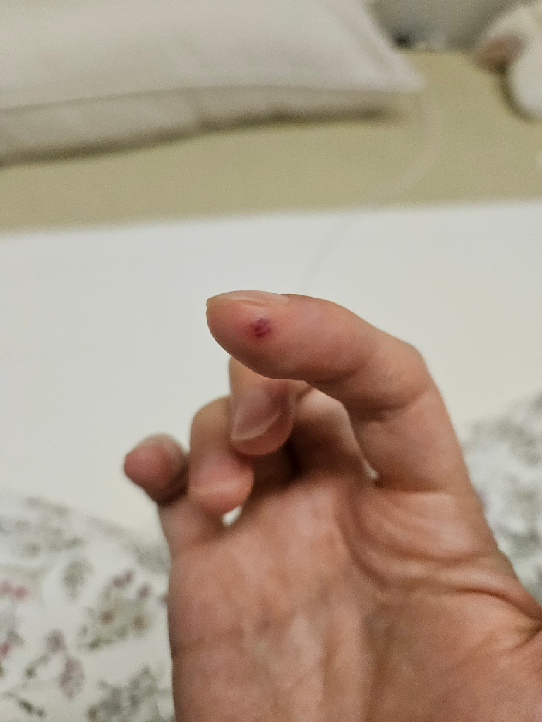 일반적으로 티눈을 의심해보아야 하는 피부 소견으로 보이지는 않으며, 사진의 소견만 가지고 구체적인 감별은 어려울 것으로 사료됩니다. 몇 주 전부터 생겼는데 사라지지 않는다면 피부과에서 진료 및 치료를 받으시는 것이 필요해 보입니다.