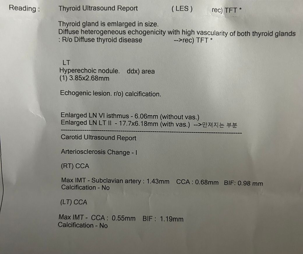 가슴이 두근 거림이 심해서 심장 초음파 전문 병원 갔다가 갑상선초음파도 해봤는데..