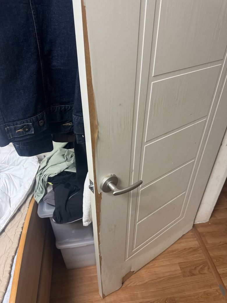 이 문이 10년 정도 사용한 문인데 이 손상이 오염으로 인한 손상인지 세월에 의한 접착력 약화로 인한 손상인지에 대해 질문드립니다. 가장자리 쪽은 다 들뜬 상태입니다