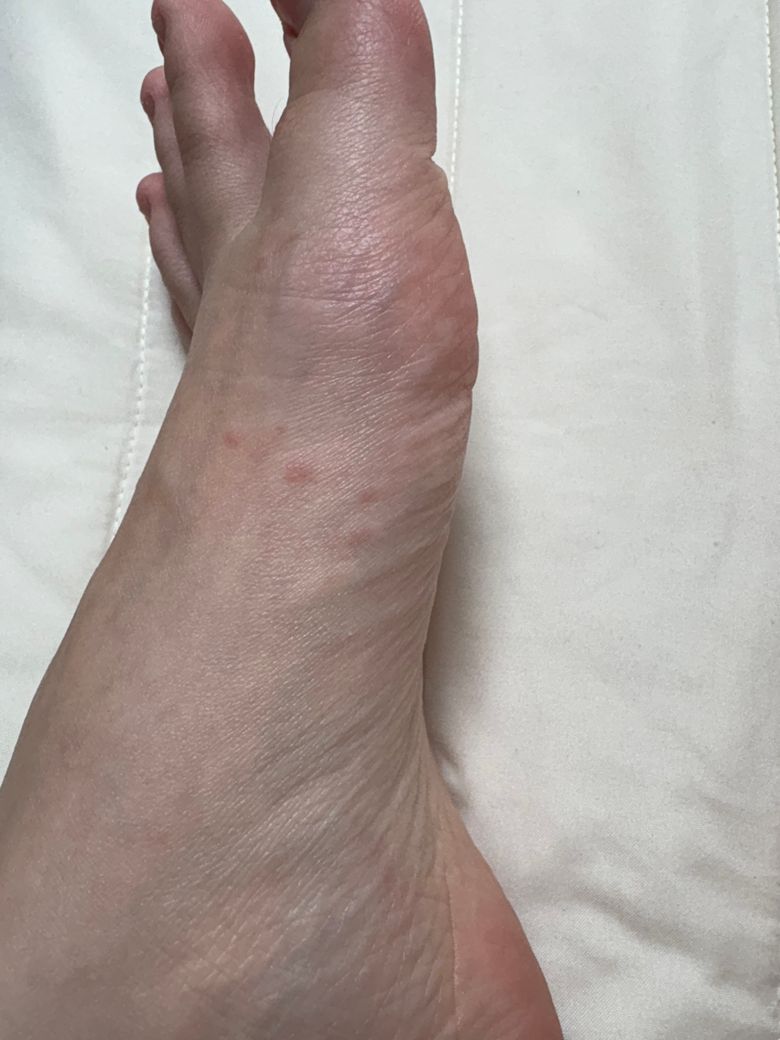 맨 발에 슬리퍼를 착용하는 것은 피하고 증상이 지속 또는 더 심해진다면 피부과 진료를 받아보실 것을 권합니다.