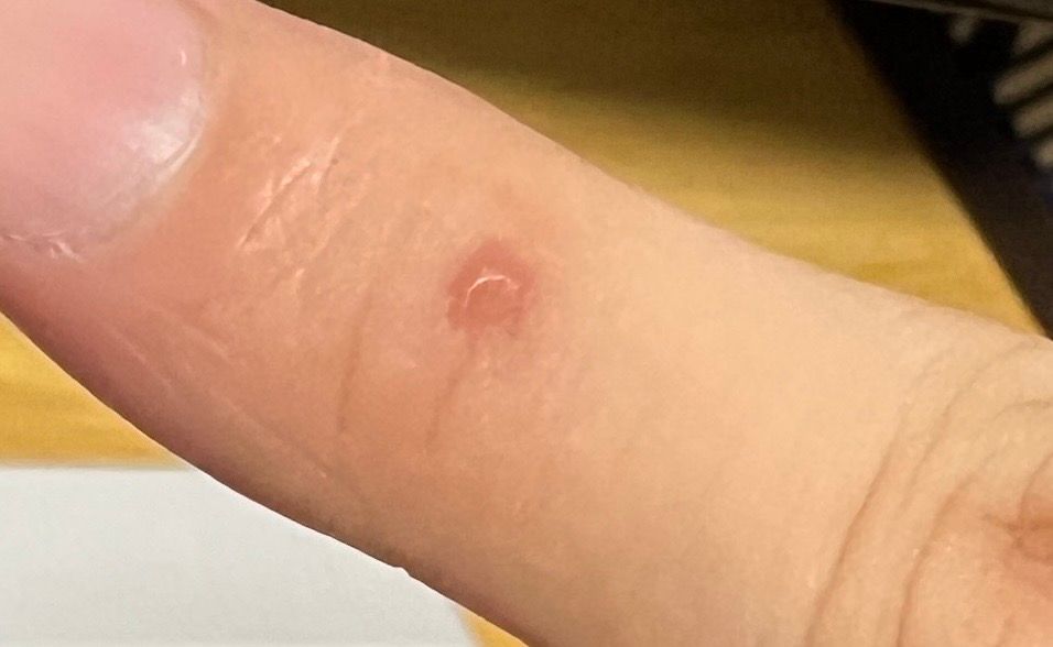 근데 냉동치료를 한 부분이 사마귀 추정부위보다 넓어서 이렇게 흉이 지고 말았습니다.
