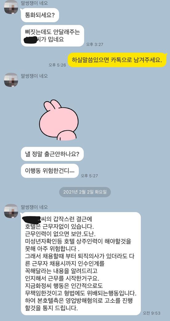 이런 거면 성희롱도 신고가능한가요..?그만둔다고 이야기했는데 그다음날 사장님께서 영업방해혐의와 손해배상청구를 한다고 합니다.
