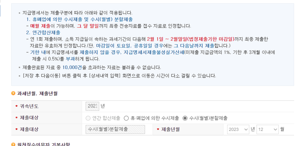 기타소득건을 수시분할제출로 신고하고 있는데, 신고기간에 제출을 못해서 진행하려고 보니