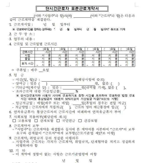 질문한 사진은 일반적으로 상용직 단시간 근로자가 사용하는 계약서입니다.