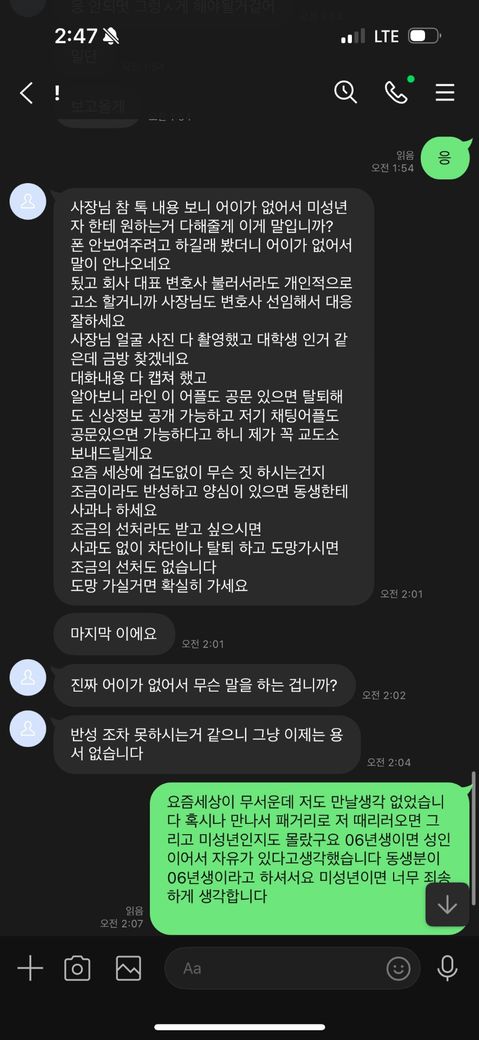 라인 음란채팅으로 고소한다고 합니다