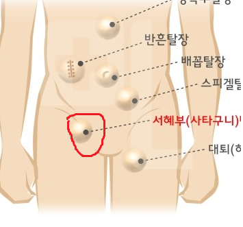 서해부쪽 (사타구니 뼈 안쪽) 에서 통증이 있는것 같습니다.