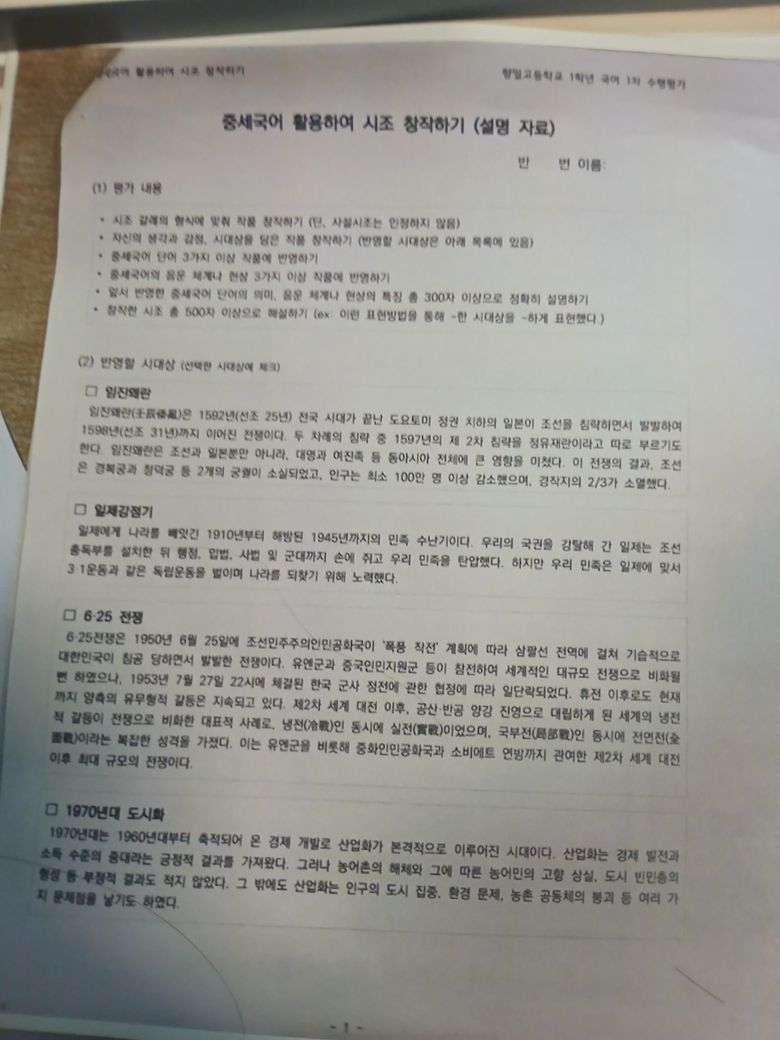 시조 갈래의 헝식에 맞춰 작품 창작하기 (사설시조 x)