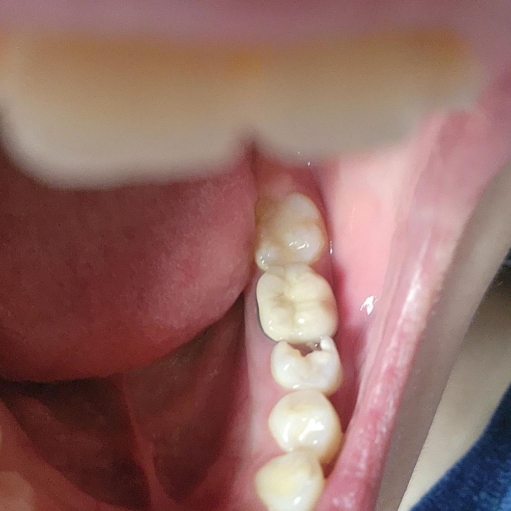 현재 치아에 구멍이 난 상태도 충치로 인해 치아가 파손된 것으로 이 경우 빠른시일내에 치과에 방문하여 치료를 받길 권하며, 현재 구멍이 난정도가 커서 크라운 치료가 필요로 될 가능성이 높습니다.