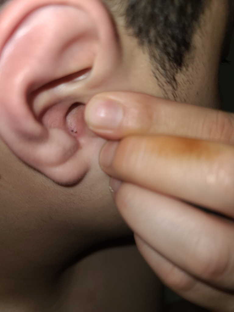사진이 잘 보이지는 않지만 단순 점이거나 상처난 부위에 딱지가 앉은 것 같아보입니다. 이비인후과를 방문하시면 정확하게 평가할 수 있겠습니다.