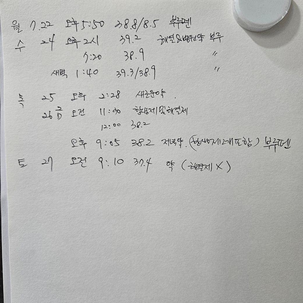 22일 토요일부터 열이나서 병원에서 약을 받아왔는데요.