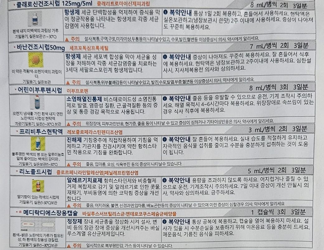 월요일에 소아과에서 감기라고 약 먹고