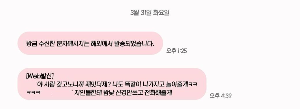 국제 발신으로 협박성 문자?가 왔는데 대상이 제가 아니라 타인이에요.