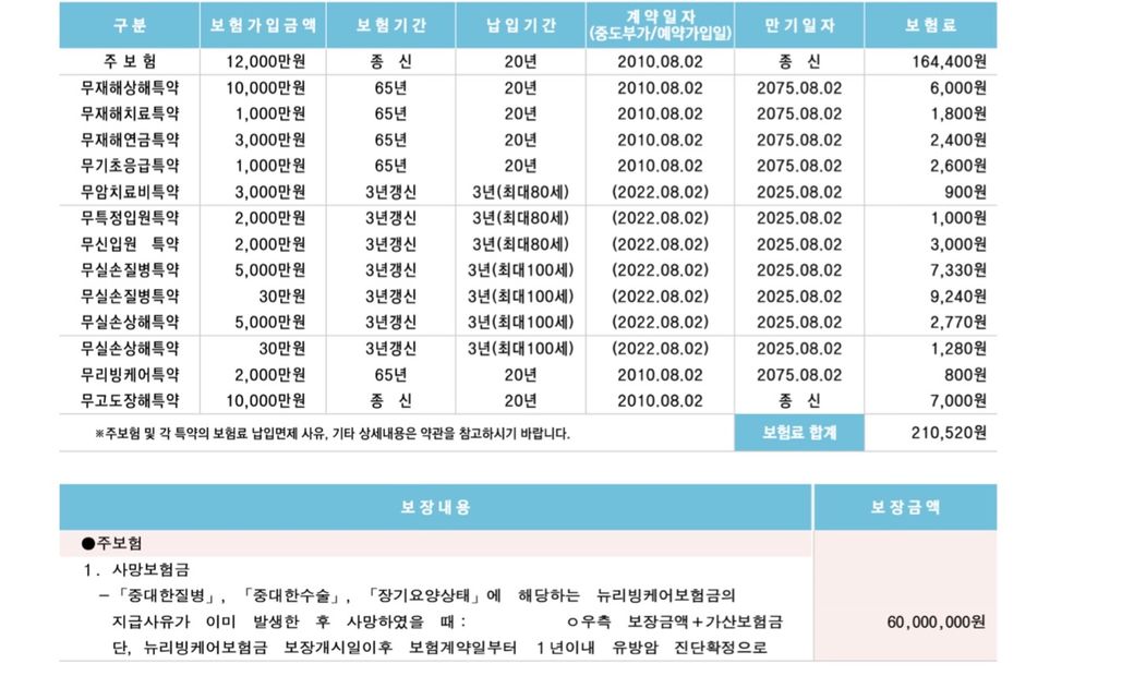 2010년부터 20년 납으로 가입중인데 한달 납입금 210,520원으로 보험료가 너무 비싼 것 같아 고민입니다.