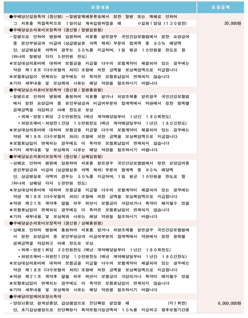 나머지는 다 좋은 특약들입니다. 유지하는 것이 좋습니다.