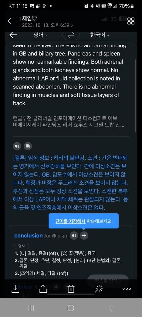 그래서 그당시 신경외과(mri촬영)정형외과 (엑스레이)촬영으로 허리는 4번5번 디스크 그리고 목은 거북목및 목디스크 의심이란 판정을 들었습니다 그러고도 괜찮아 지지 않아서 결국은 상복부 mri를 촬영했고 첨부파일처럼 그당시 특이사항은 없었습니다(23년 10월경)