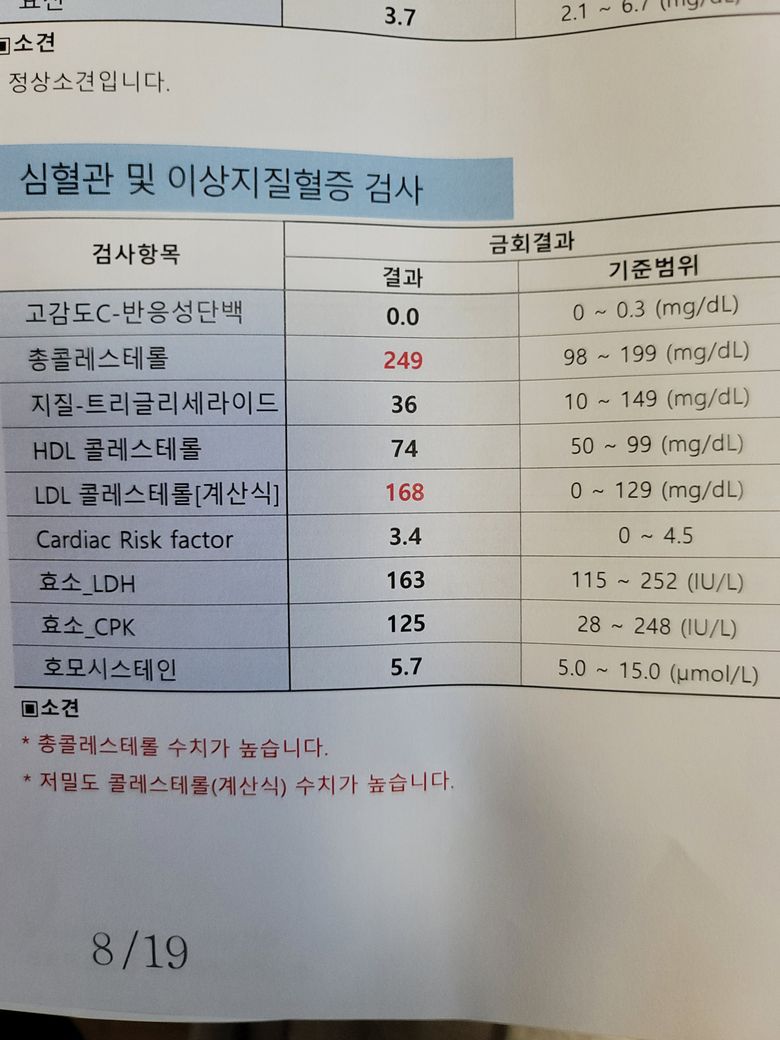 전체적으로 판단했을 때 아직 약물 치료보다는 운동, 식사 조절 정도만 해 보시면 될 것 같습니다. 문의 주신대로 고지혈증은 유전적인 영향이 큽니다. 그러므로 주기적으로 검사를 하시기를 바랍니다.