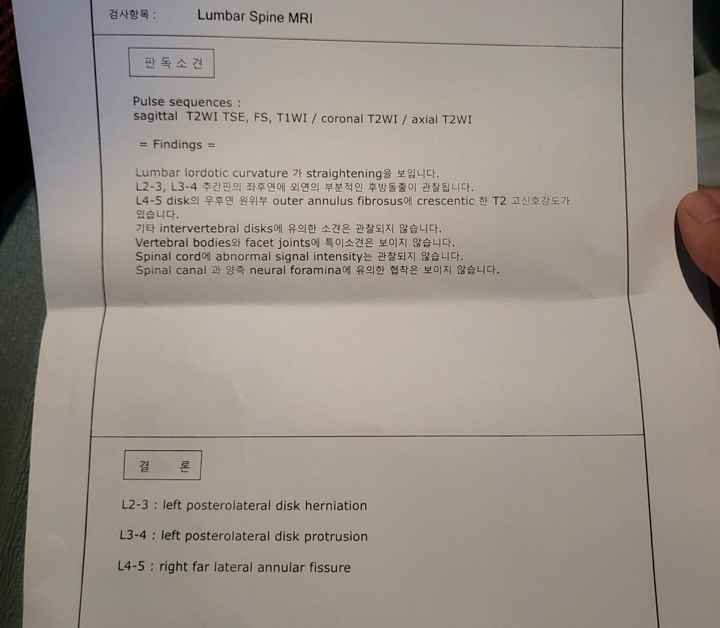 교통사고로 허리가 안좋아서 mri를찍었는데