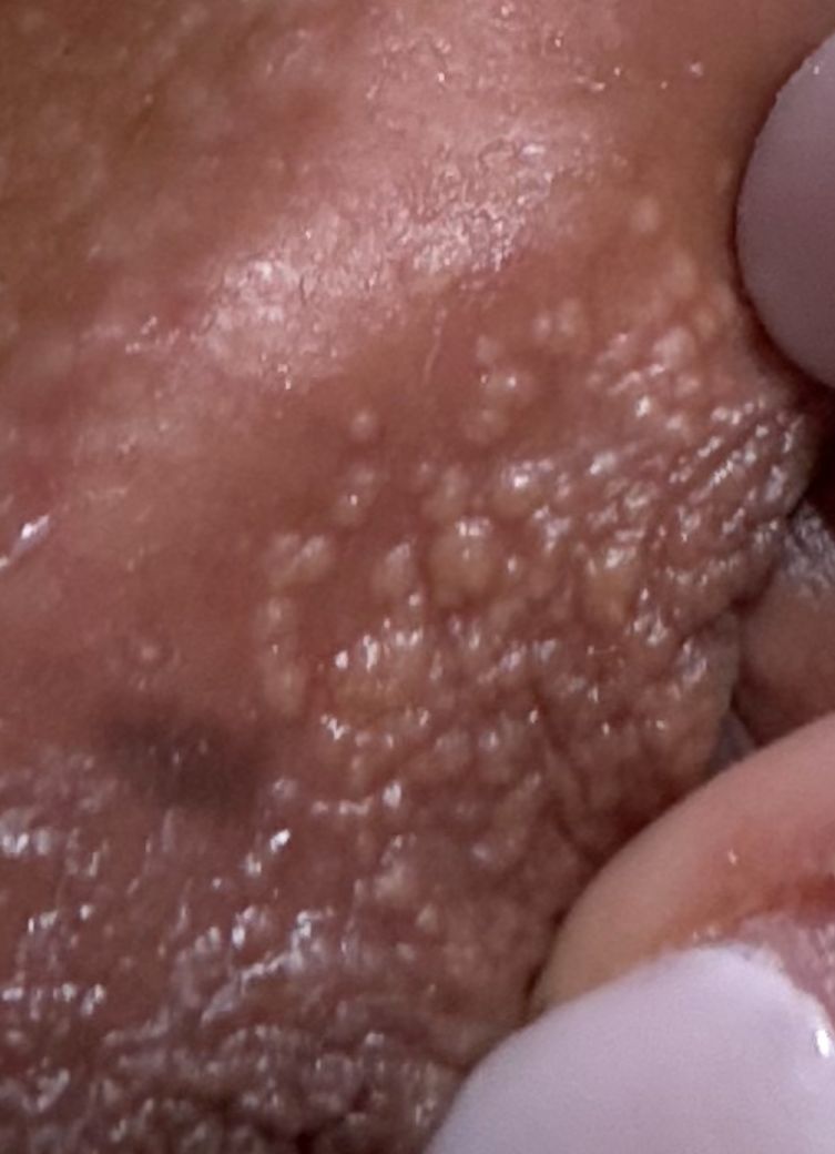 며칠 전부터 종종 간지럽고 했는데 헤르페스가 맞나해서요,, 평소에 잘 확인은 해보지 못했는데 오돌토돌한 게 뭐가 많아 헤르페스일 수도 있다고 생각이 되서 걱정입니다ㅜ