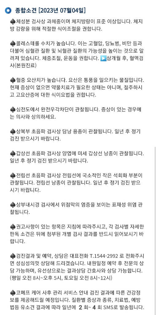 1~3번이 걱정이네요. 사실 작년 검사에서 똑같이 나와서 체중 줄이려고 노력중이에요.