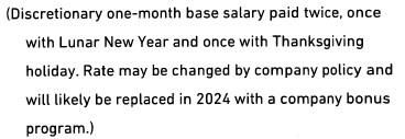 회사는 23년까지는 상여금을 지급하고 24년부터 상여금을 지급하지 않고 대신 성과급을 지급하고 있습니다.