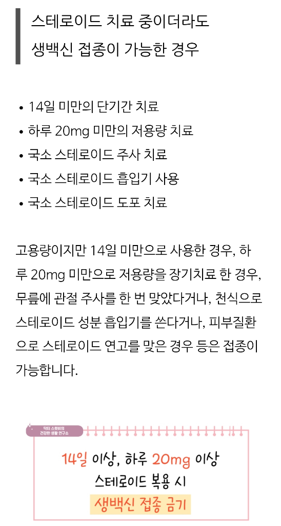 생백신 스테로이드 사용가능.관련 참고자료는 아래와 같다네요!