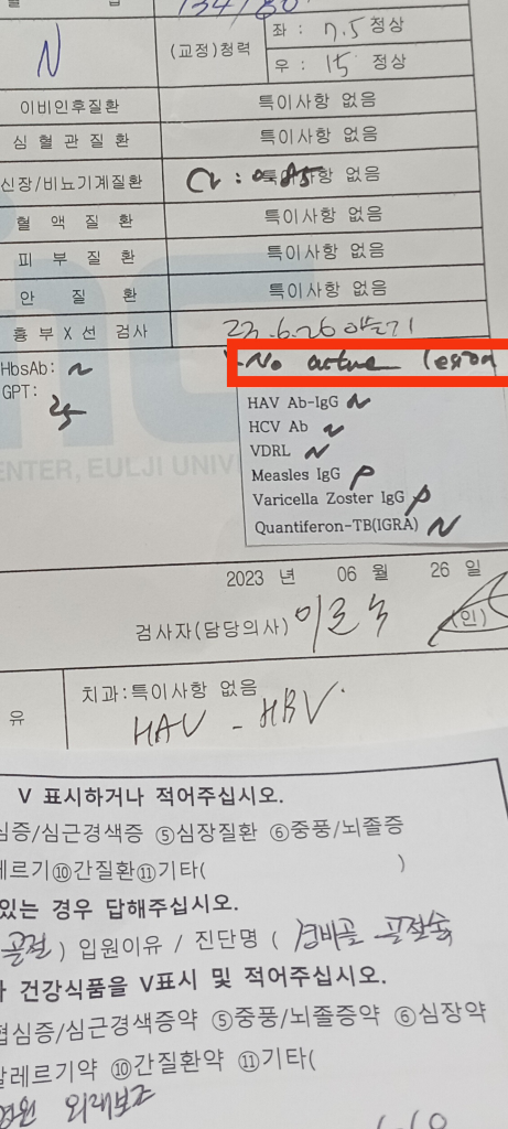 하지만 기존의 결핵이나, 다른 이상에 대한 언급 자체가 없긴한데...