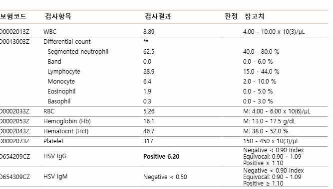 헤르페스 igg항체가 검출되었습니다...