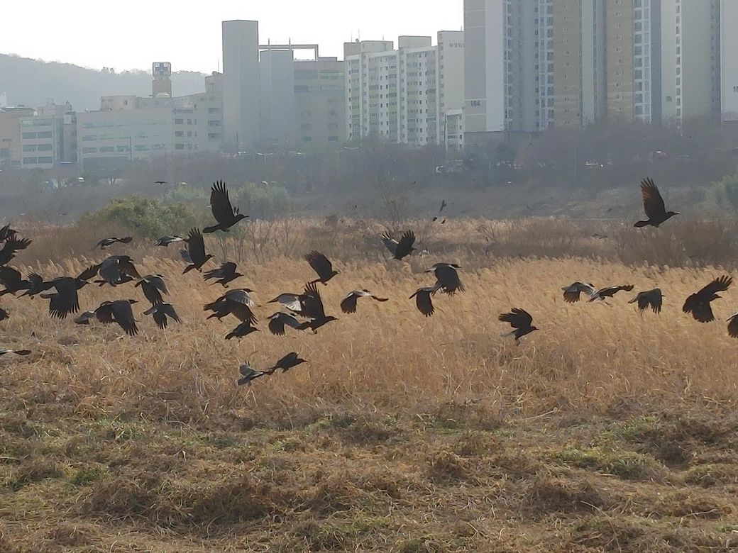 까마귀는 높은 하늘에 맹금류를 괴롭히고 장난을 칠 뿐만 아니라 땅에 내려와 앉아서 맹수나 뱀에게도 눈치를 보고 덤비며 물에 들어가서 물고기나 개구리도 사냥해서 먹죠.