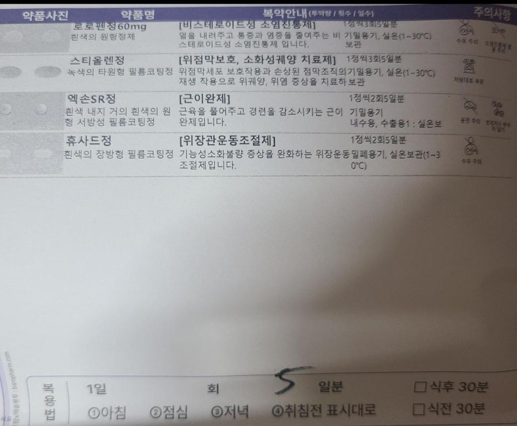 무거운것 들었다놨다 반복해서 일해서 허리 아팠던날로부터 2달후 의원가서 5일 약 처방해서 다먹고 안먹으니까 먹기전 처럼 아픕니다