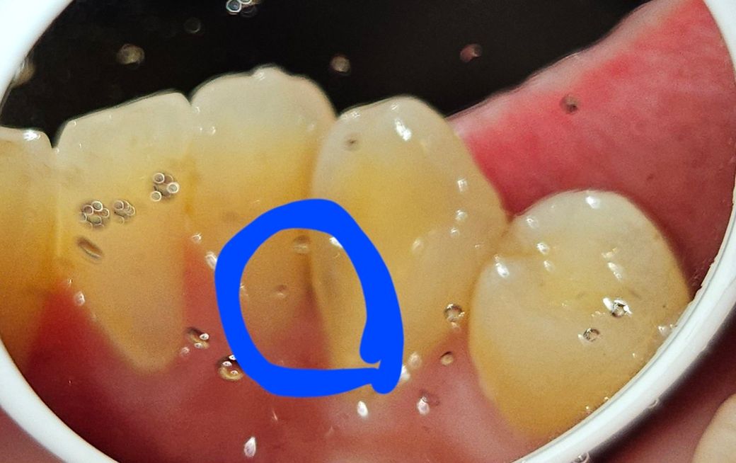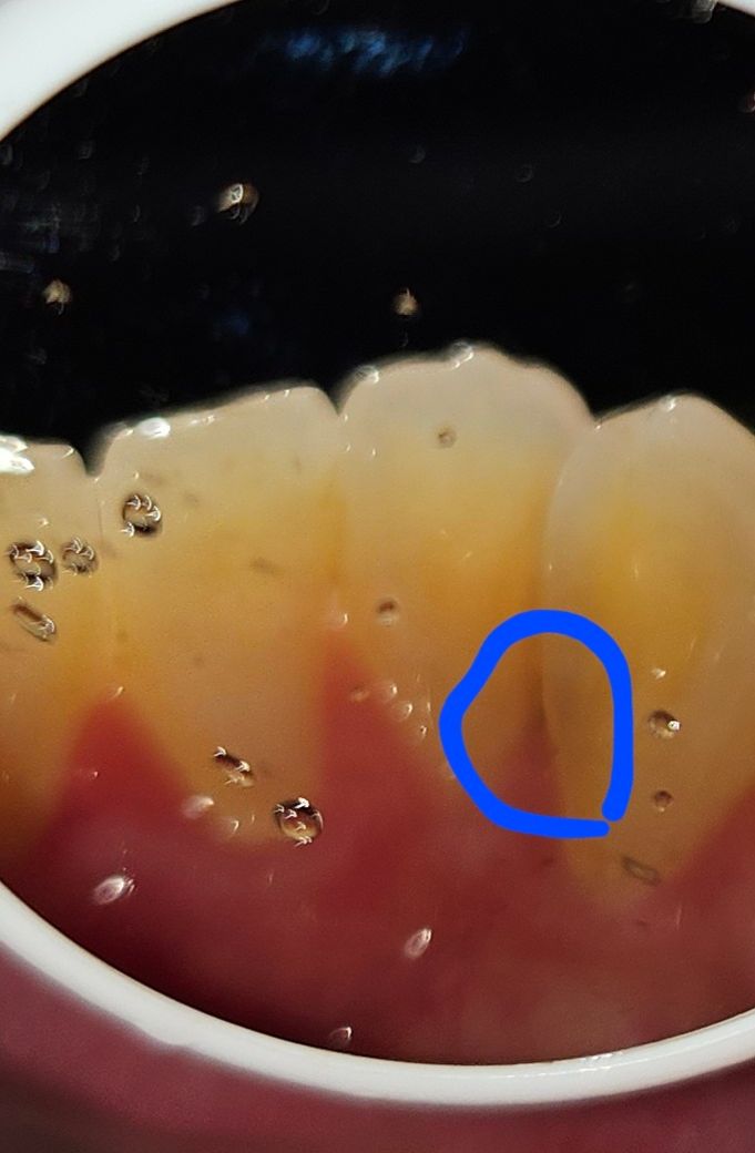 2~3일전부터 갑자기 보이기 시작했는데 치실을 해봐도 안없어지고 살짝 검은색 줄로 보이는데 사진으로보는것보다 실제로 보면 좀 더 검은색으로 치아가 닿는면에 긴 검은색 줄이 있습니다..