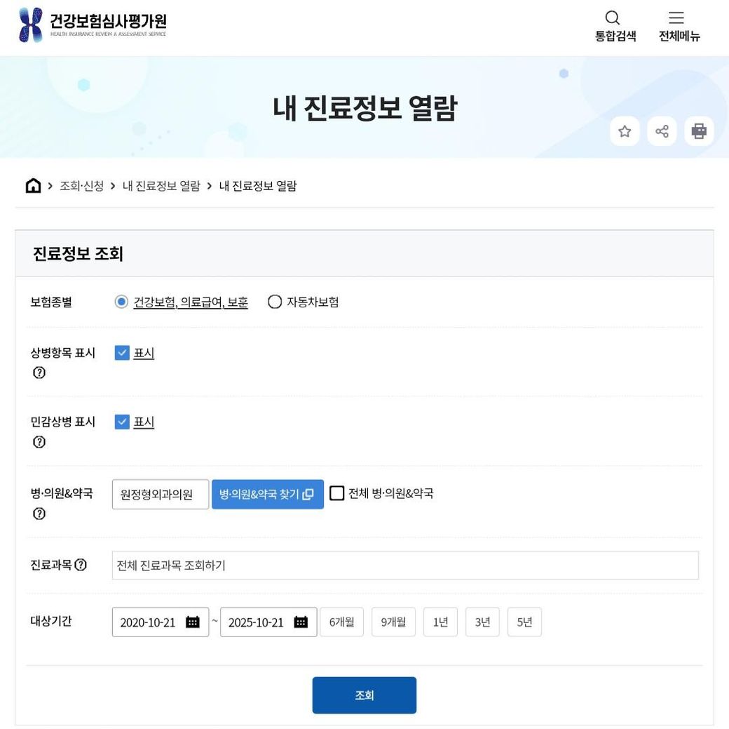 사진에서 의료기관 명칭에 해당하는 곳에서의 진료기록만 확인하는 건가요?