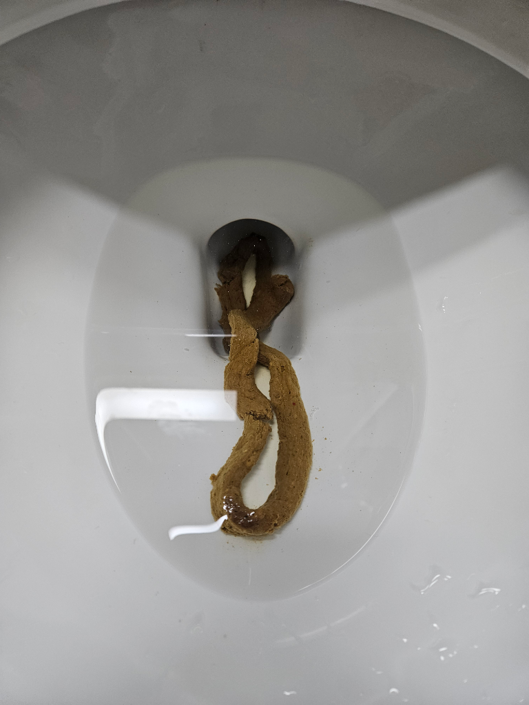 사진의 대변을 통해서 보았을 때에는 보통 일반적으로 생각을 하였을 때에 얇은 변을 보았다고 볼 정도의 소견이라고 할 수 있겠습니다.