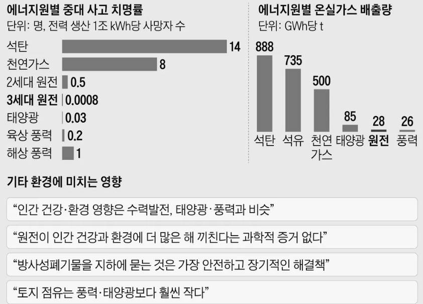 원전은 온실가스 배출량도 매우 적고 환경에 해를 끼친다는 증거도 없다고 합니다