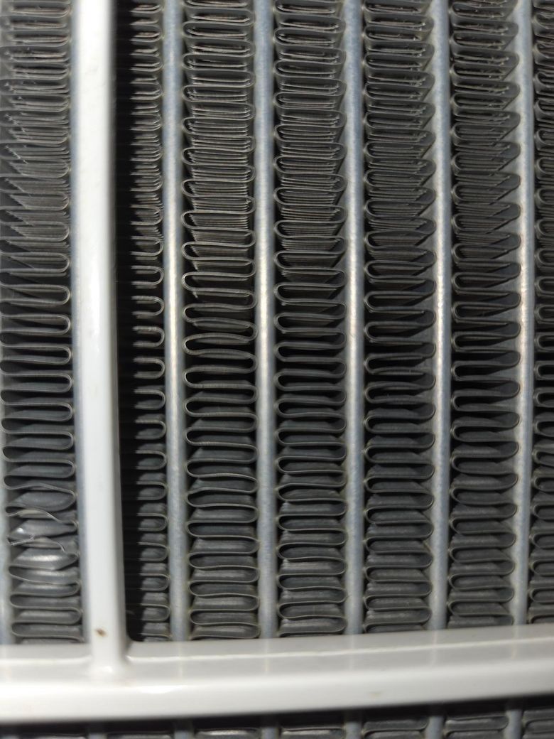 사진 속 부품은 에어컨 뒷부분 열교환기 부분입니다. 일부 휘는건 흔한 일이고 보통 성능에 큰 문제 없습니다. 휘어진 부분이 작으면 그대로 사용해도 무방합니다. 신경쓰인다면 핀 브러시나 작은 일자 드라이버, 이쑤시개 등을 이용해서 살살 펴주시면 됩니다