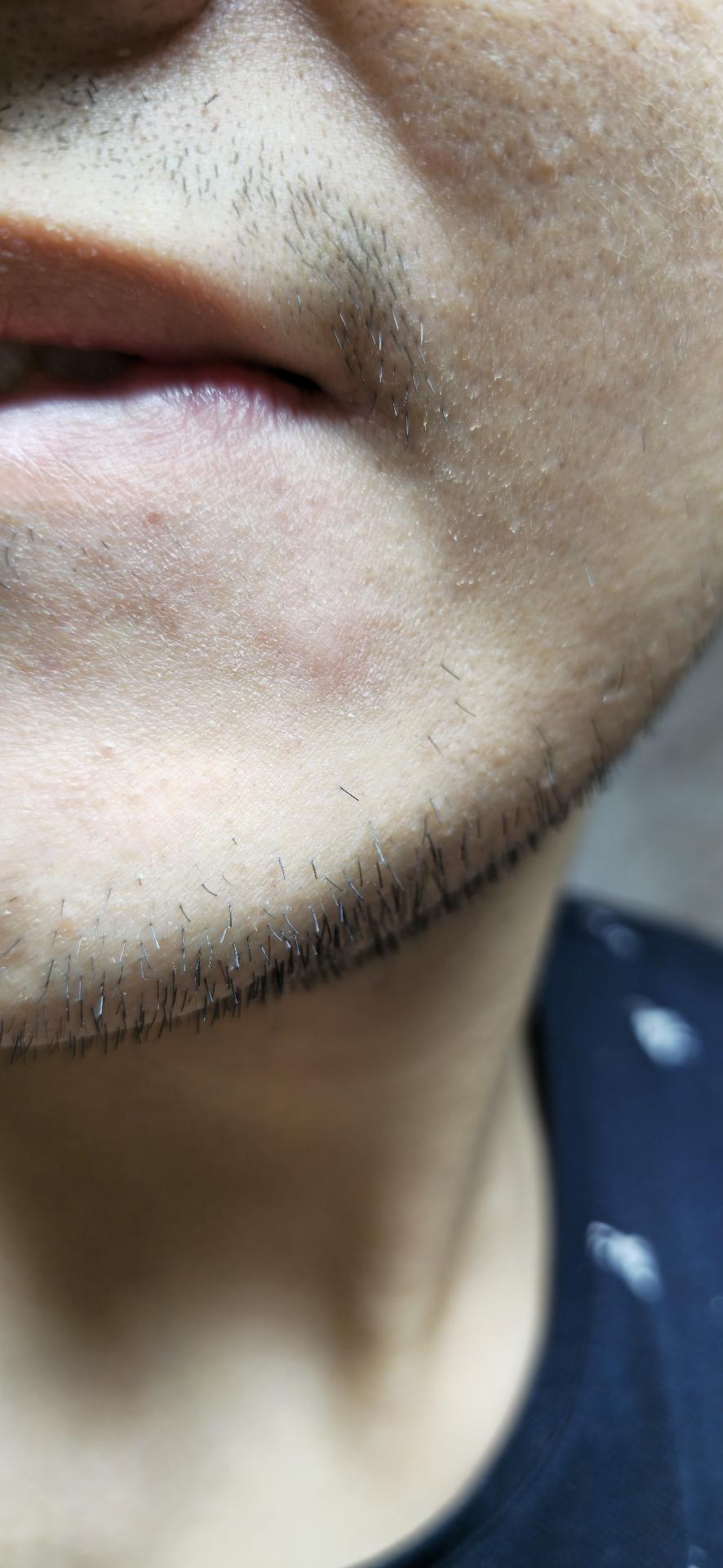 사진만 보면 여드름(염증성 혹은 낭종성 여드름) 또는 모낭염 둘 중 하나로 보이는 모양이 더 가깝습니다. 턱·목수염 부위에 잘 생기는 형태입니다.