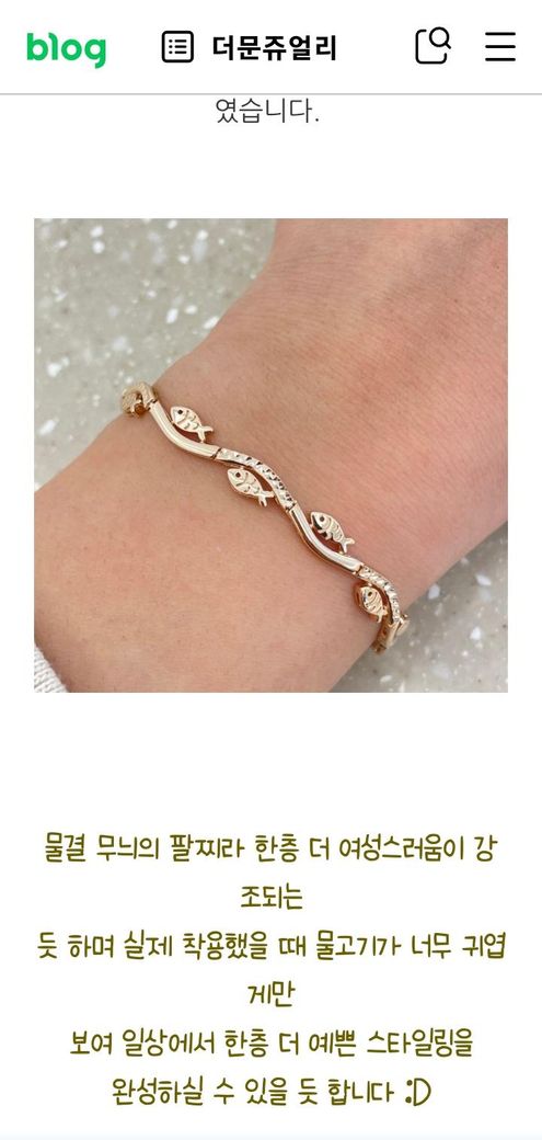 물고기반지를 착용 중 이라면 우선 물고기 반지 제품과 비교를 하여 더 어울리는 팔찌를 구매하는 것이 좋을 것