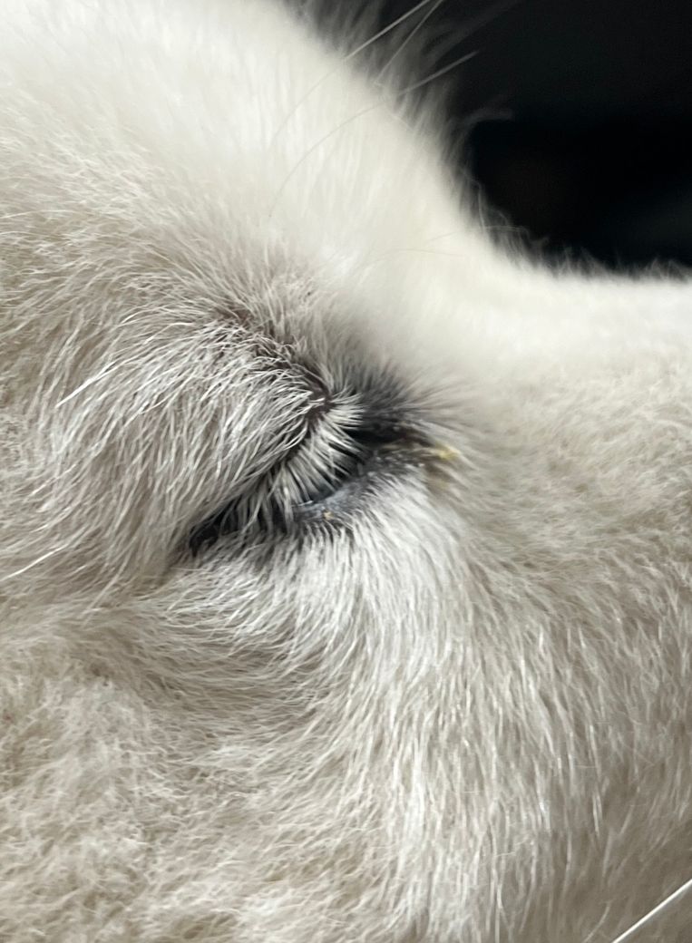안녕하세요. 박창민 수의사입니다. 눈의 분비물이나 노폐물이 일시적으로 많아지면 그런 경우도 있습니다. 다만, 사진과 정황으로는 그 무엇도 판단할 수 없기 때문에 안과 수의사가 있는 동물 병원에 한 번 가셔서 검진을 받아보시는 게 좋아 보입니다. 감사합니다.