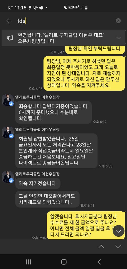 투자 전문가의 '실제' 성명 및 연락처가 없는 상태입니다.(아직 오픈채팅방은 열려있는 상태)