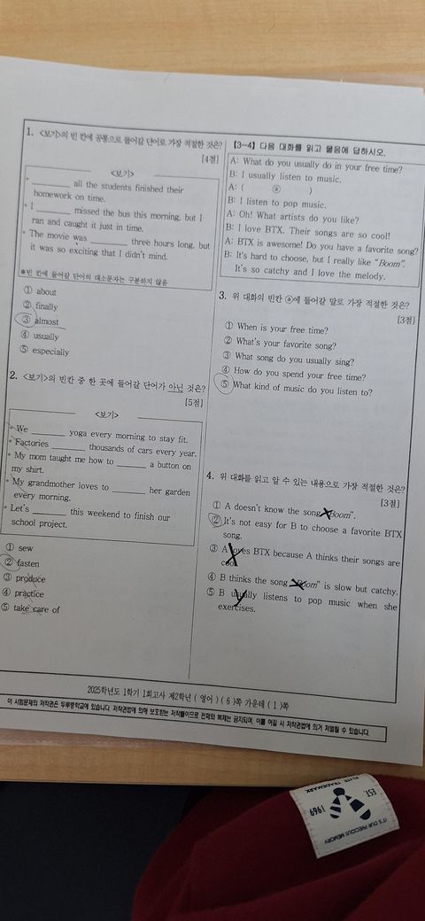 중간고사 영어가 오류가 있다는데 몇번이 오류인가요?