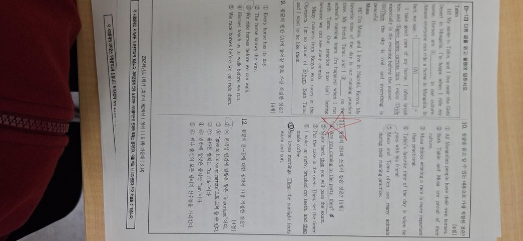 오늘 중간고사 영어를 봤는데 지금 학교에서 1문항 오류가 있다고 내일 재시험을 본데요. 근데 몇번문제가 오류인지 안알려주네요. 친구들 말로는 11번이나 1번이 오류가 있다는데 몇번이 오류가 있는지 알려주세요!!