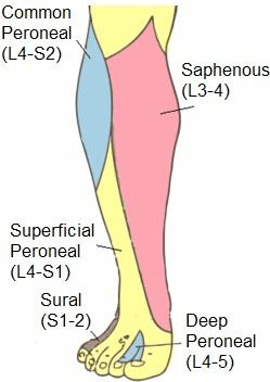 위 그림은 신경의 피부 분포를 보여주는 그림이며, 노랗게 표시된 부분에 증상이 발생하신다면